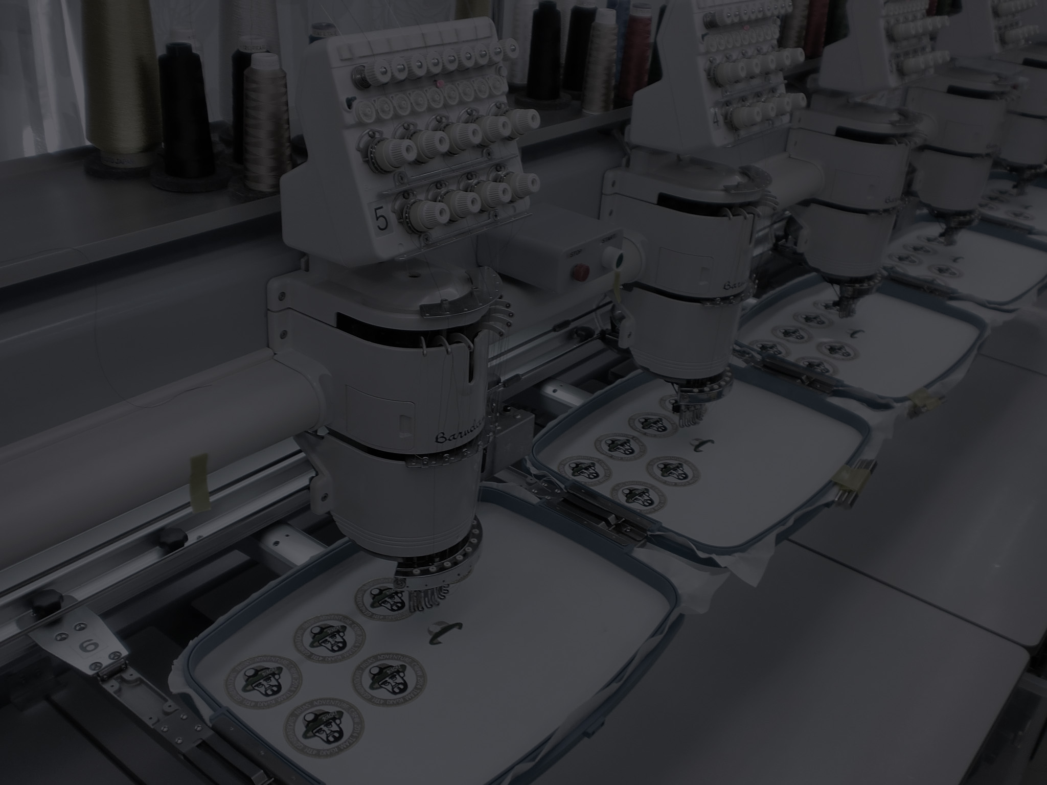 ご確認後、刺繍やプリント加工の製作に入ります。熟練の職人が 1 枚 1 枚丁寧に仕上げます。
