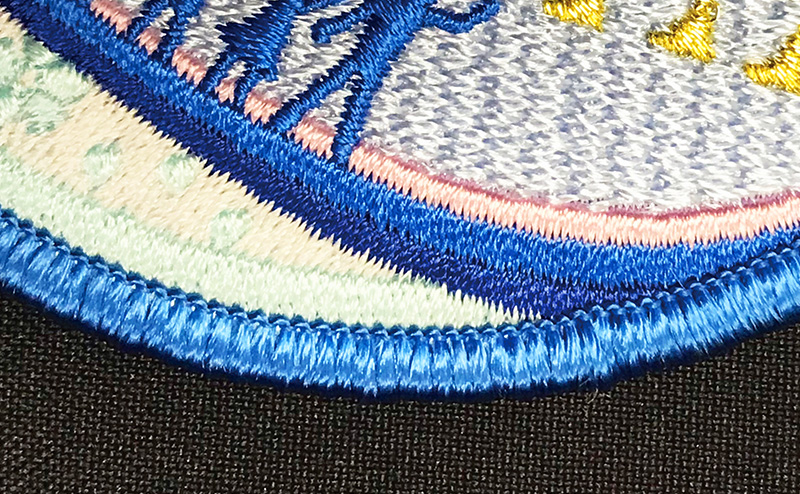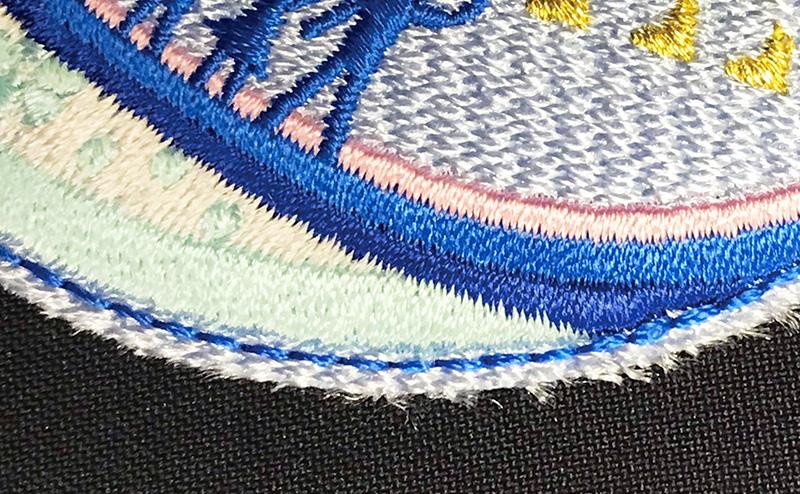 縁が糸できれいに囲われることで、ワッペンの輪郭がはっきりし、完成度の高い印象になります。