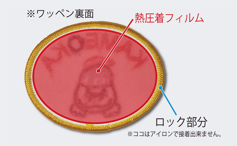 ワッペンのふちを糸でぐるりと包み込む加工方法です。