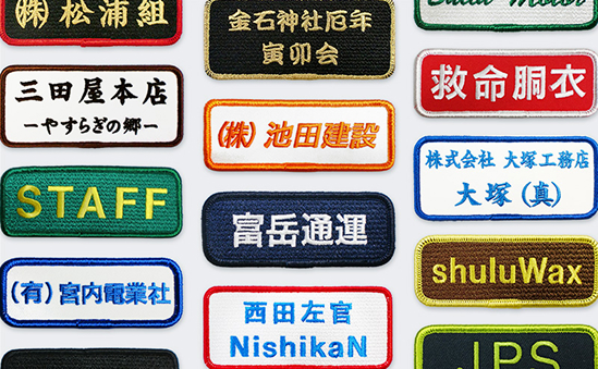 読みやすさと仕上がりの均一性を重視した専用書体で、社名・部署名・個人名などを刺繍できます。